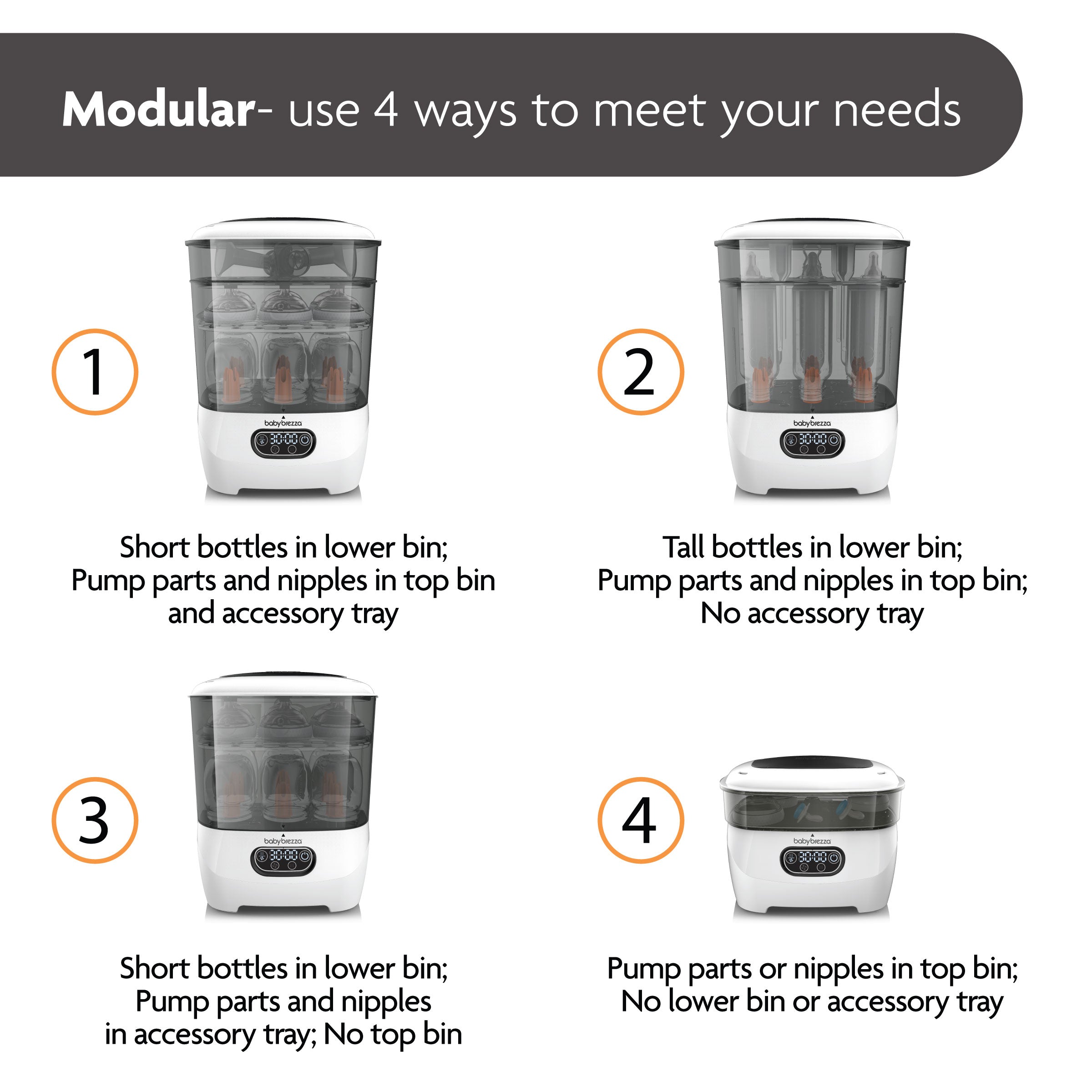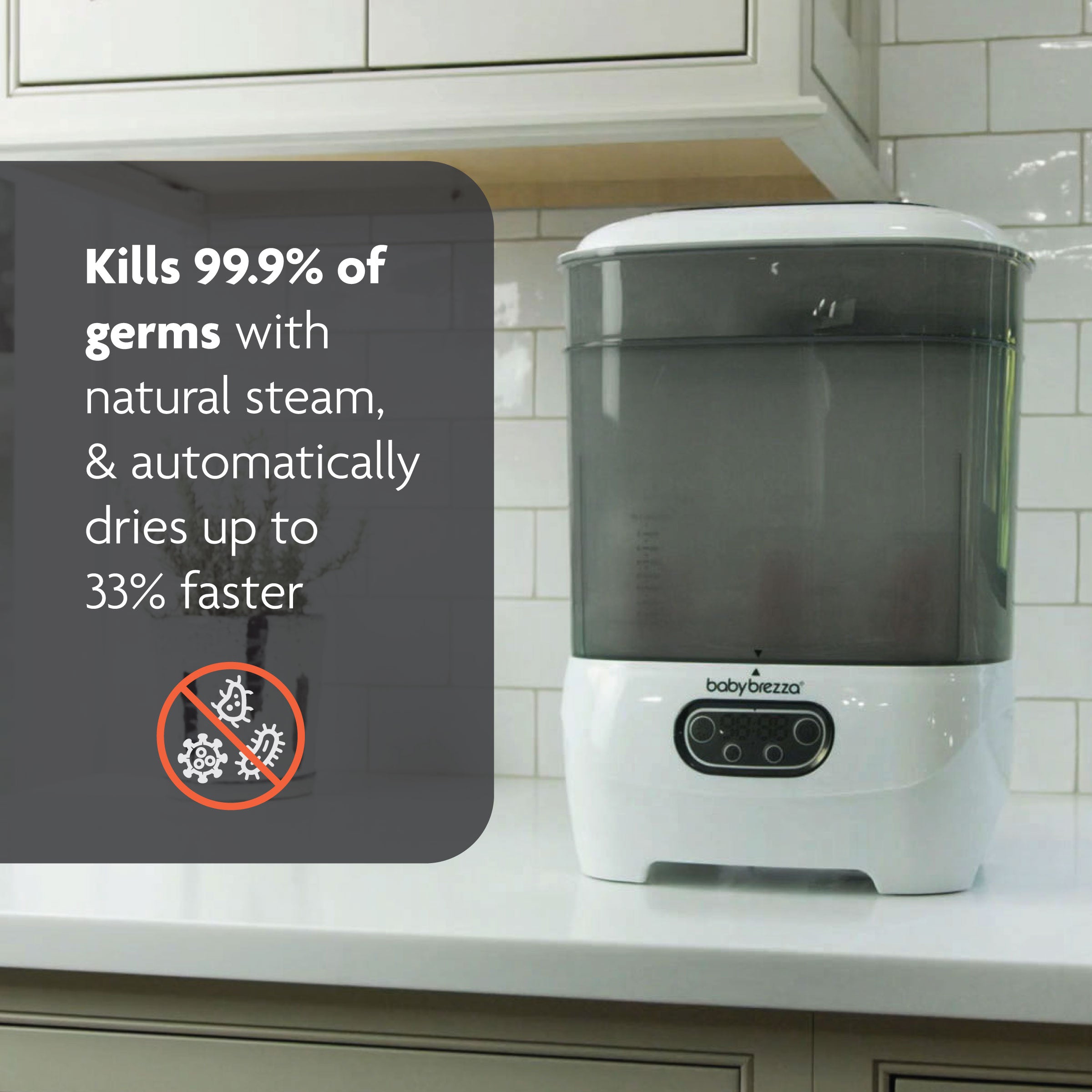 • Automatically sterilizes and dries 33% faster – Compatible with any brand of bottles. pump parts. pacifiers and accessories