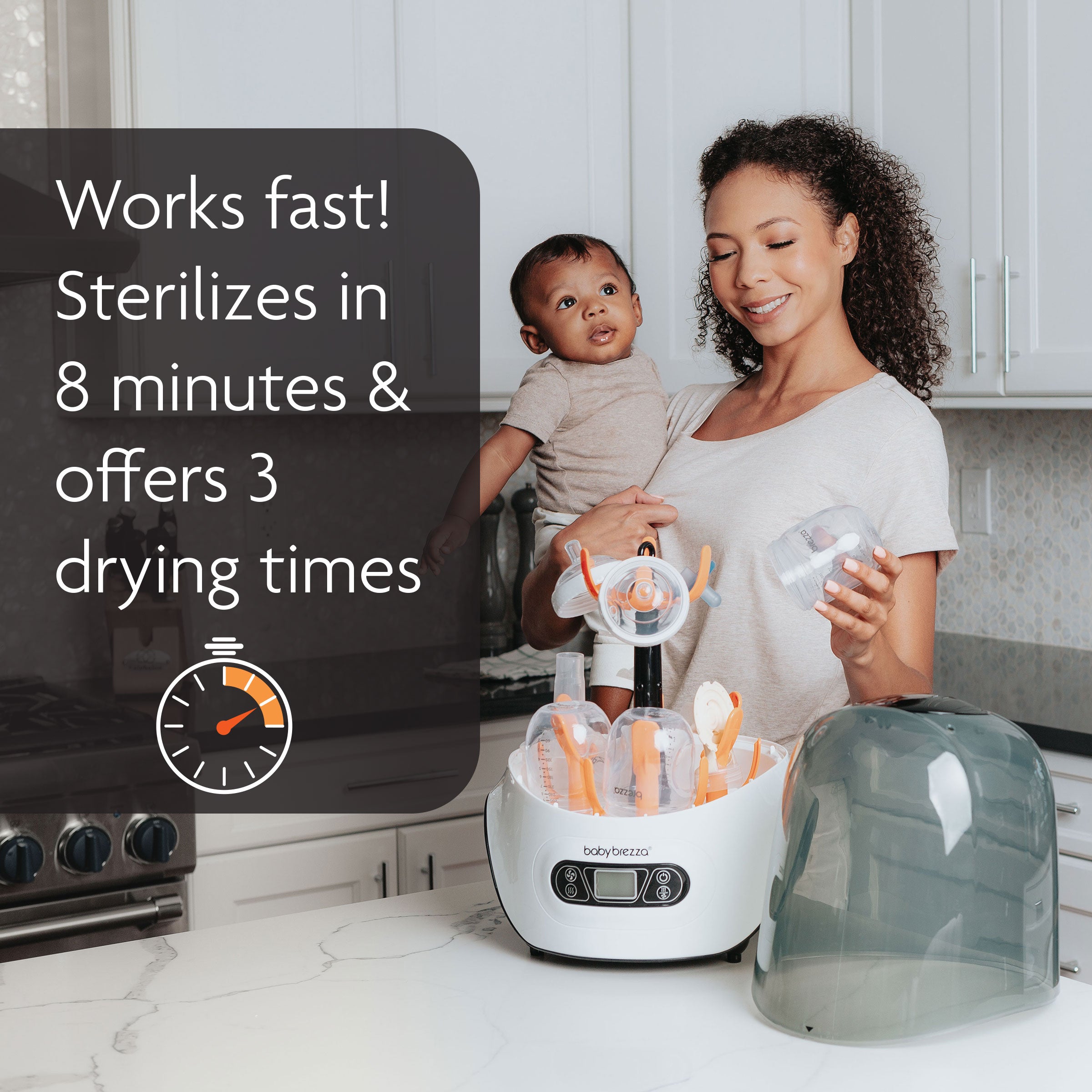 - Automatically sterilizes and dries bottles. pump parts. and accessories in one easy step – Faster. safer. and more hygienic than boiling or air drying