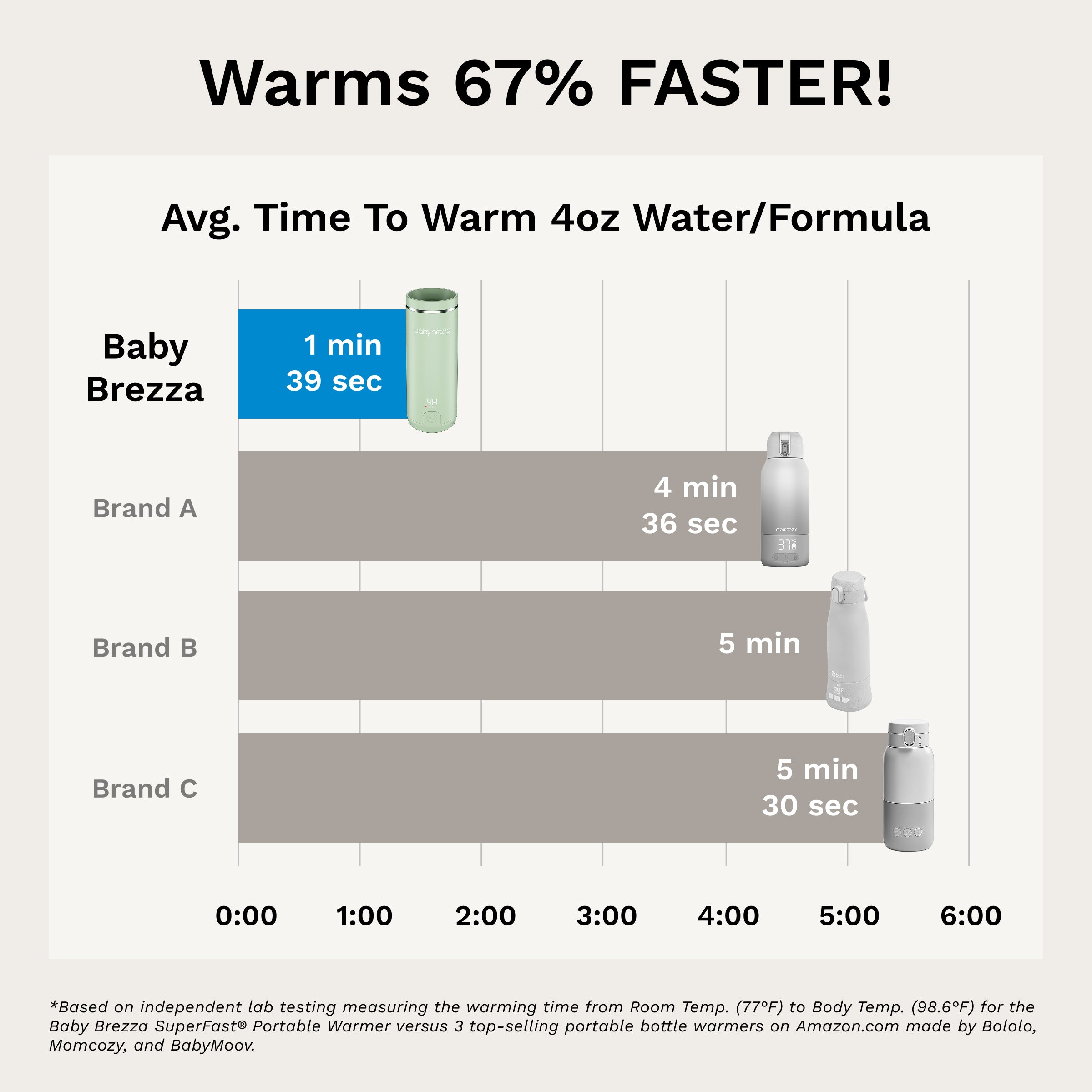 • Warms fastest – 67% faster than other portable warmers; warms 8 oz in 3 minutes (from room to body temp); heater is 67% stronger than other brands (100w vs 60w)?